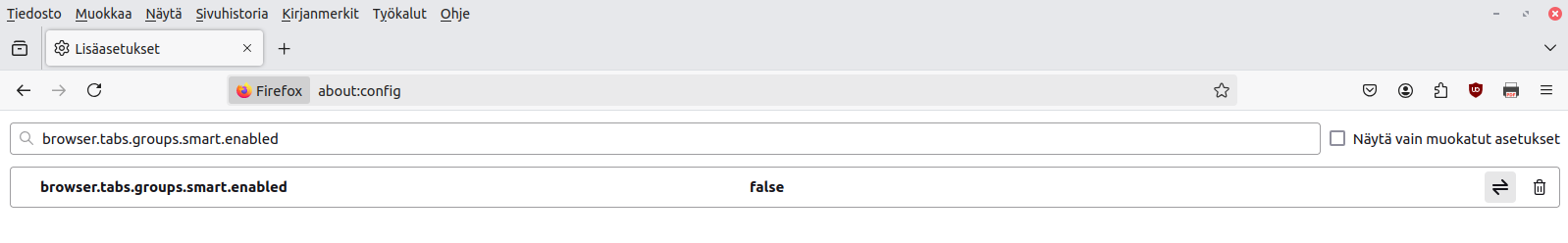 How to disable AI from Firefox about:config in Firefox browser.tabs.groups.smart.enabled Set as false